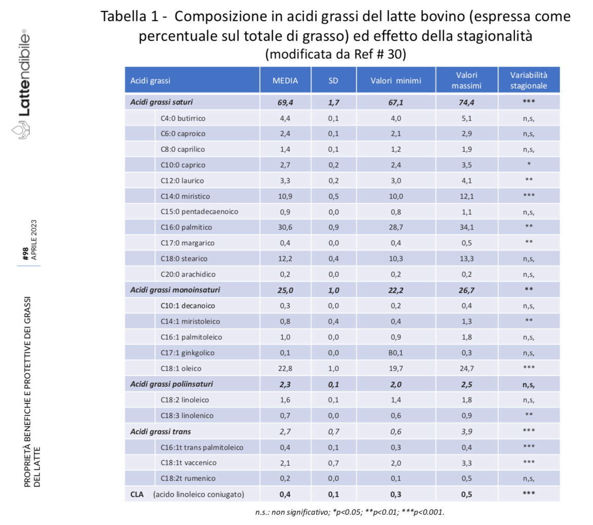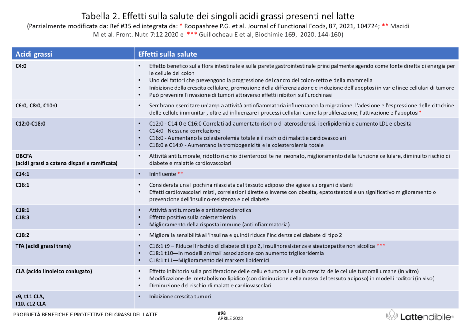 Rischio che viene ulteriormente mitigato dalla presenza di acidi grassi a lunga catena a catena ramificata e dispari, i quali contribuiscono alla protezione cardiovascolare, da diabete mellito ed esercitano anche attività antitumorale (vedi Tabella 2).