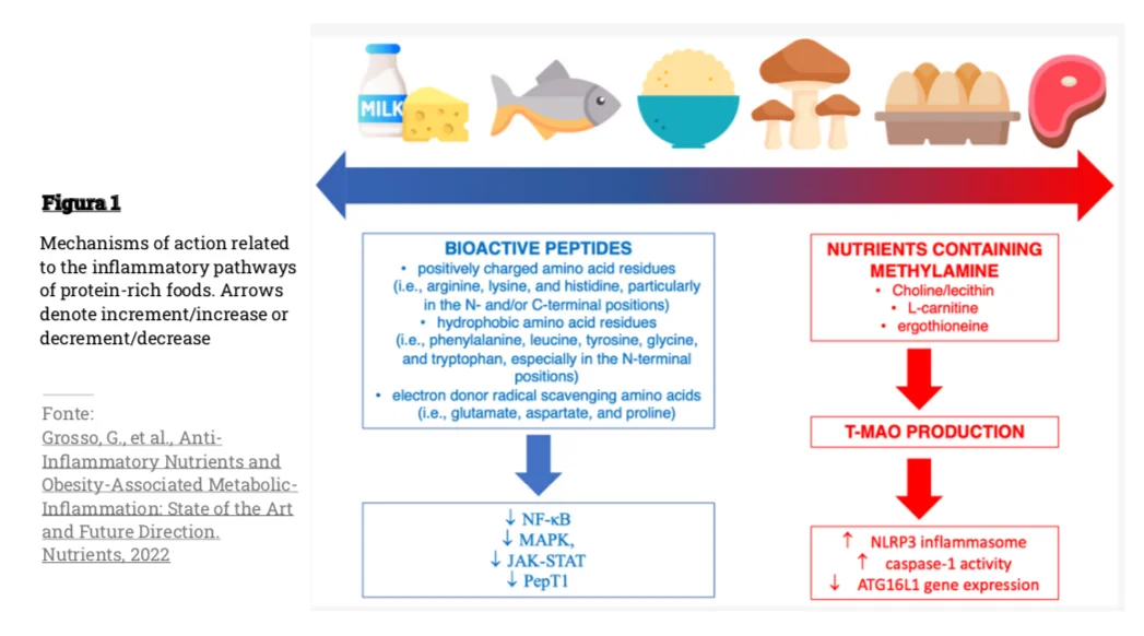 Tra i prodotti di derivazione animale, invece, i latticini e i prodotti della pesca si comportano in maniera simile agli alimenti di origine vegetale, diminuendo sensibilmente gli indici infiammatori [21, 22], al contrario di quanto succede per la carne rossa (sia fresca che trasformata) e per le uova, che alcuni studi trovano neutre o al contrario correlate ad aumento dei markers di infiammazione [23-25].